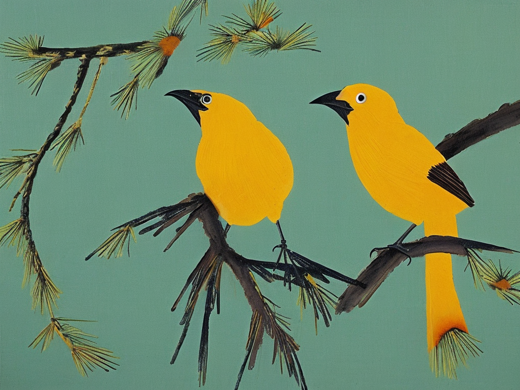 一、一般用法:这里没有特别要强调说明的地方,主要是要写好提示词。这里举一个示例,提示词为:Two yellow orioles sing amid the green willows. 效果图为:
