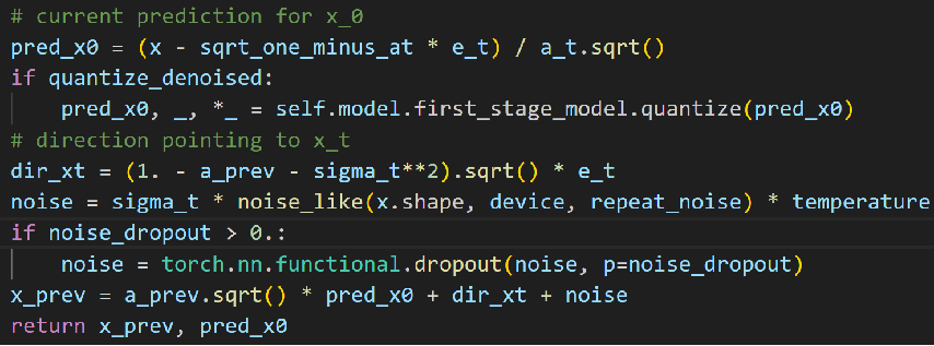即通过转换,可以通过公式的变换,基于已经训练的网络的推理的error输出epsilon和xt,得出x0。