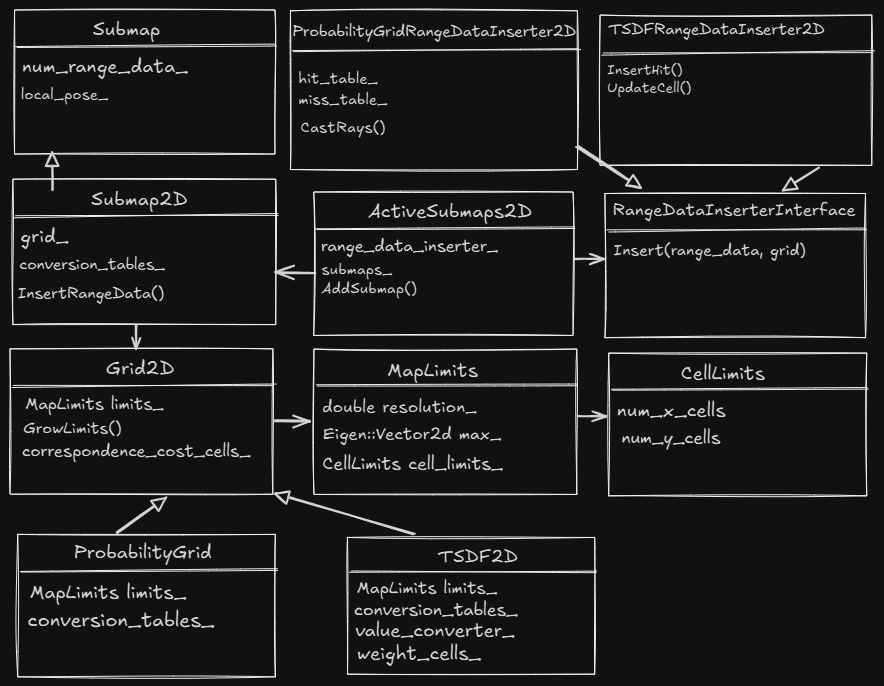 SLAM系列之cartographer系统2D建图模块类图关系结构和应用功能简要分析说明